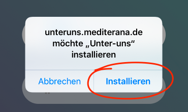 1. Klicken Sie den Button "APP INSTALLIEREN" unten in diesem Fenster und bestätigen Sie die Installation: